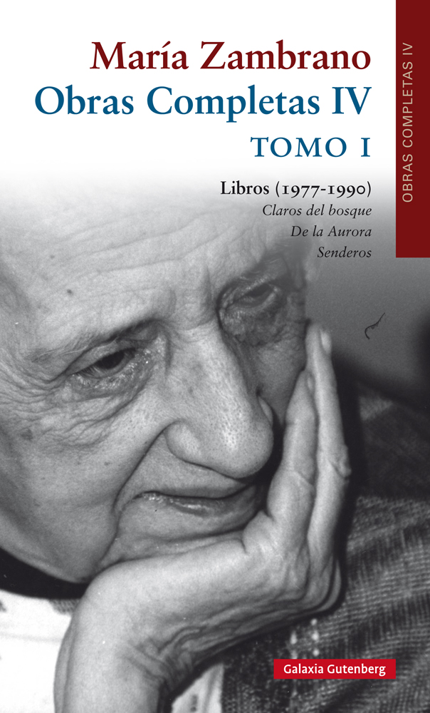 Este volumen IV completa la edición de los 23 libros que Zambrano dio a publicar. En sus respectivos tomos I y II recoge sus 6 últimos libros. Cuatro de ellos –Claros del bosque (1977), De la Aurora (1986), Notas de un método (1989) y Los bienaventurados (1990)– parten de un tronco común, crecido entre 1954-1974, que desarrolla la razón poética, y del que se irán desgajando estos cuatro libros, que configuran así el árbol final de este pensamiento. Ese mismo tronco común afecta también a los otros dos libros que figuran en este volumen IV: Senderos (1986) y Algunos lugares de la pintura (1989).
